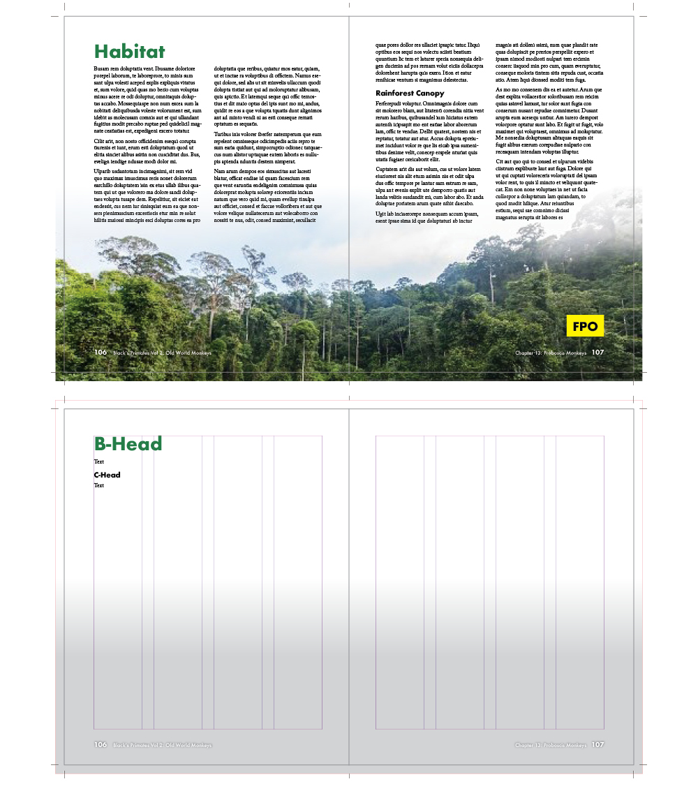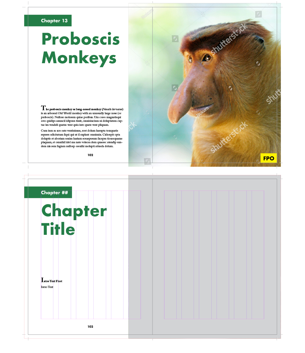 - Text Pages – A sample text-heavy spread with two levels of headings.
