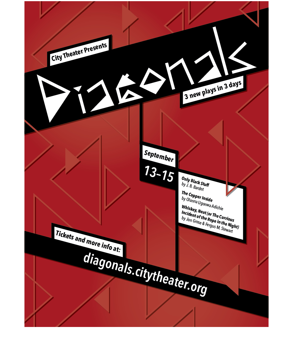 For a long time I've had an itch to design something with text set at an extreme angle, so when a local theater hosted a poster-making event as part of their "Break it Down" series, I took advantage of the opportunity.